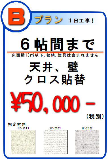 岡崎市、その近隣の方限定!! いきなりたくさんのクロス工事をしてもらうと仕上がりが心配・・・。 そんな方におススメ!!